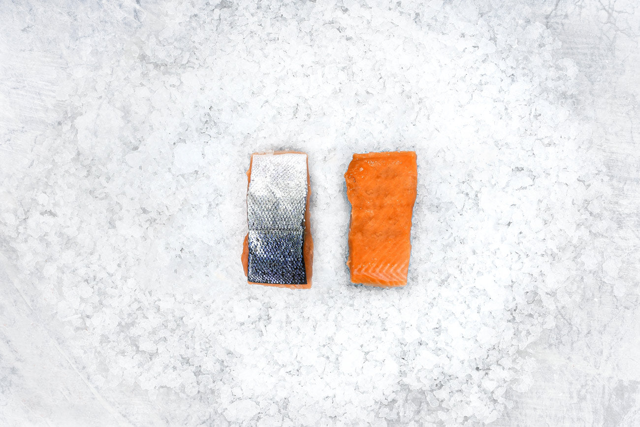 Coho Salmon are also called Silver Salmon. Our Coho salmon are harvested off the North Coast of Haida Gwaii, the “Islands on the Edge of the World”, from stocks that are healthy, abundant, and managed to maintain or increase their population. These Northern Coho are caught in a troll fishery in which lures are trailed behind one of our fishing vessels with each fish individually hooked and brought aboard by hand and then flash frozen to preserve the quality and taste. Coho salmon has reddish-orange meat and although milder in flavour to Sockeye, it is one of the best tasting salmon. Considered the most aggressive of the salmon, the Northern Coho performs as spectacularly in the kitchen as it does on the line.